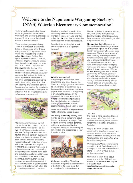 The time for Waterloo is fast approaching, On Saturday at the NWS gaming day we tried out the table configuration for the 15mm game of Waterloo using Napoleon's Battles. Apart from some concern about the two games butting up against each other, a risk we christened "Carlo's Corner", we think we can get everything to fit without problem.